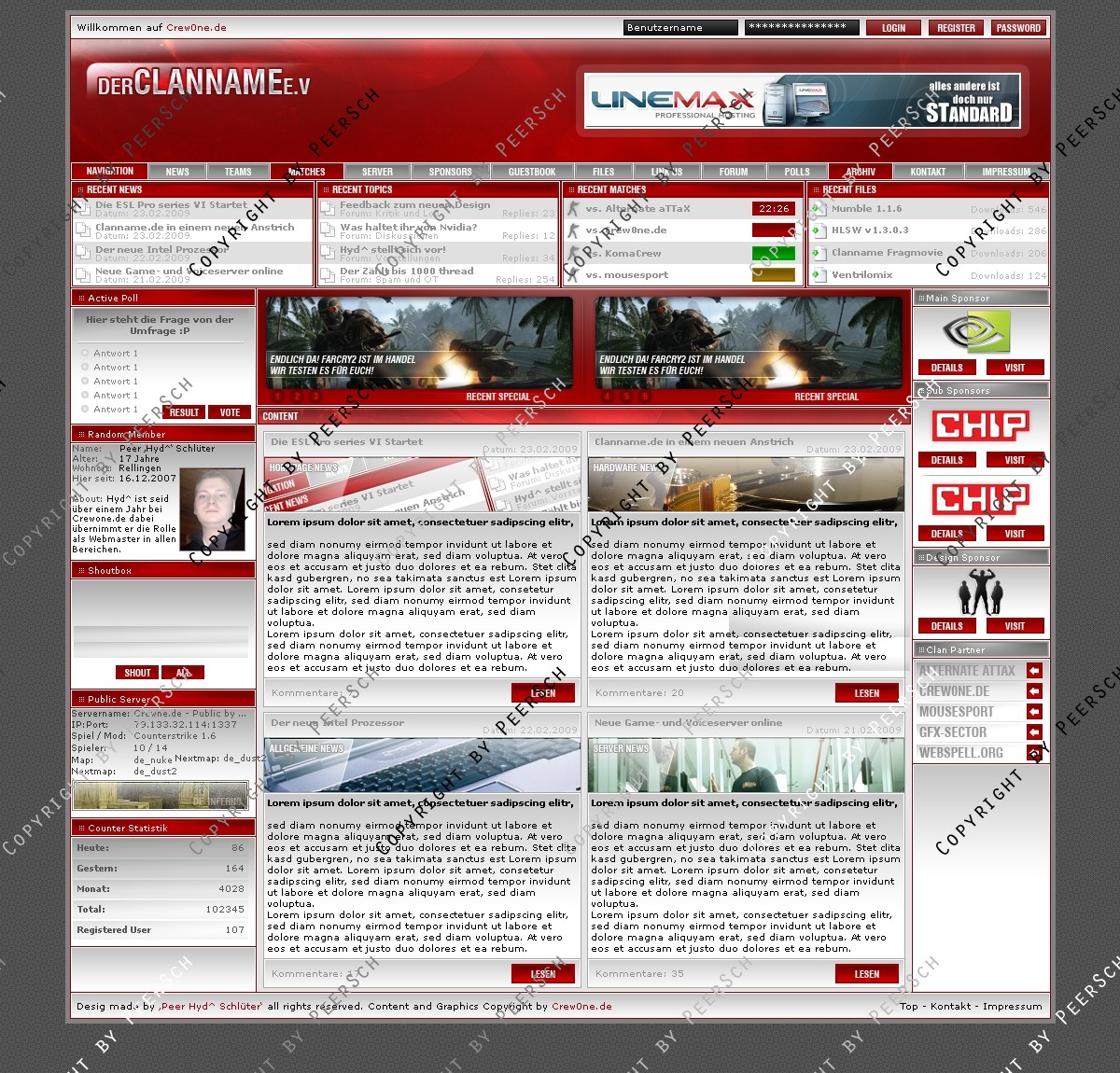 Was Sie hier kaufen ist lediglich die PSD Datei, gerne kann ich es Ihnen gegen einen Aufpreis von 13€ an ein CMS Anpassen, zur Auswahl stehen hierbei: webSPELL, Clansphere, Teklab, Devilz und andere CMS auf Anfrage ohne Aufpreis.