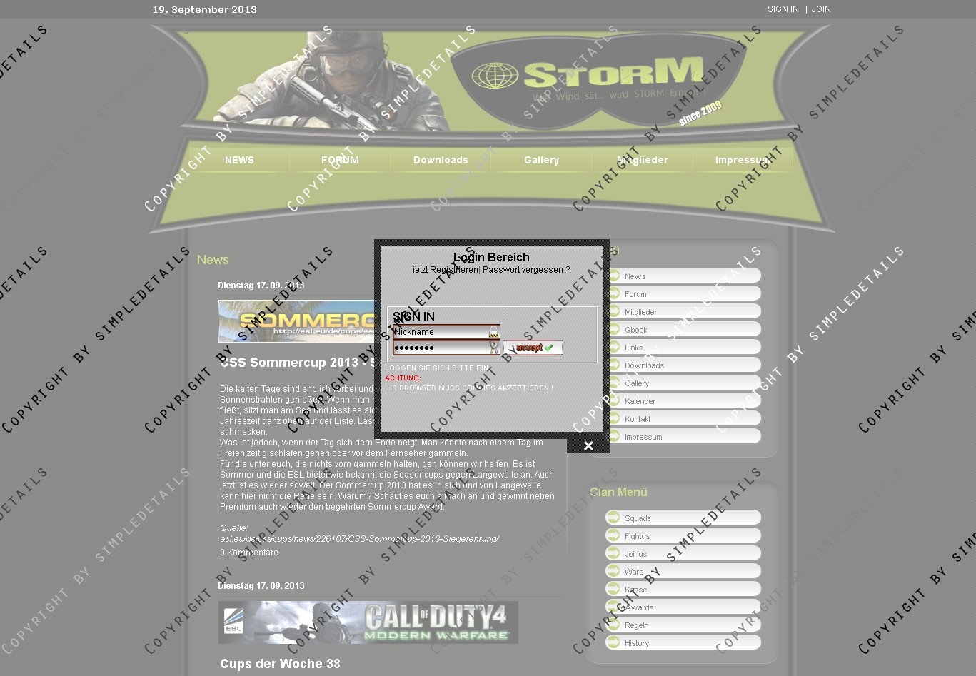 Im Header ist ein Clan-Logo eingebunden, das auch in der .PSD Datei vorhanden ist, und frei angepasst werden kann.